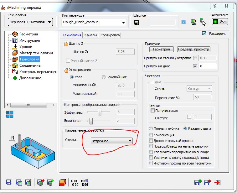 maxx2000orel писал(а): Это точно относится к черновой обработке? Выше Вы и товарищи уже разжевали в каком случае обрабатывается по часовой стрелке, а в каком против. Скорее всего Ваша настройка скорее относится к чистовому проходу(вижу у Вас выбрана совмещённая черновая+чистовая обработка). Если не так поправьте.
