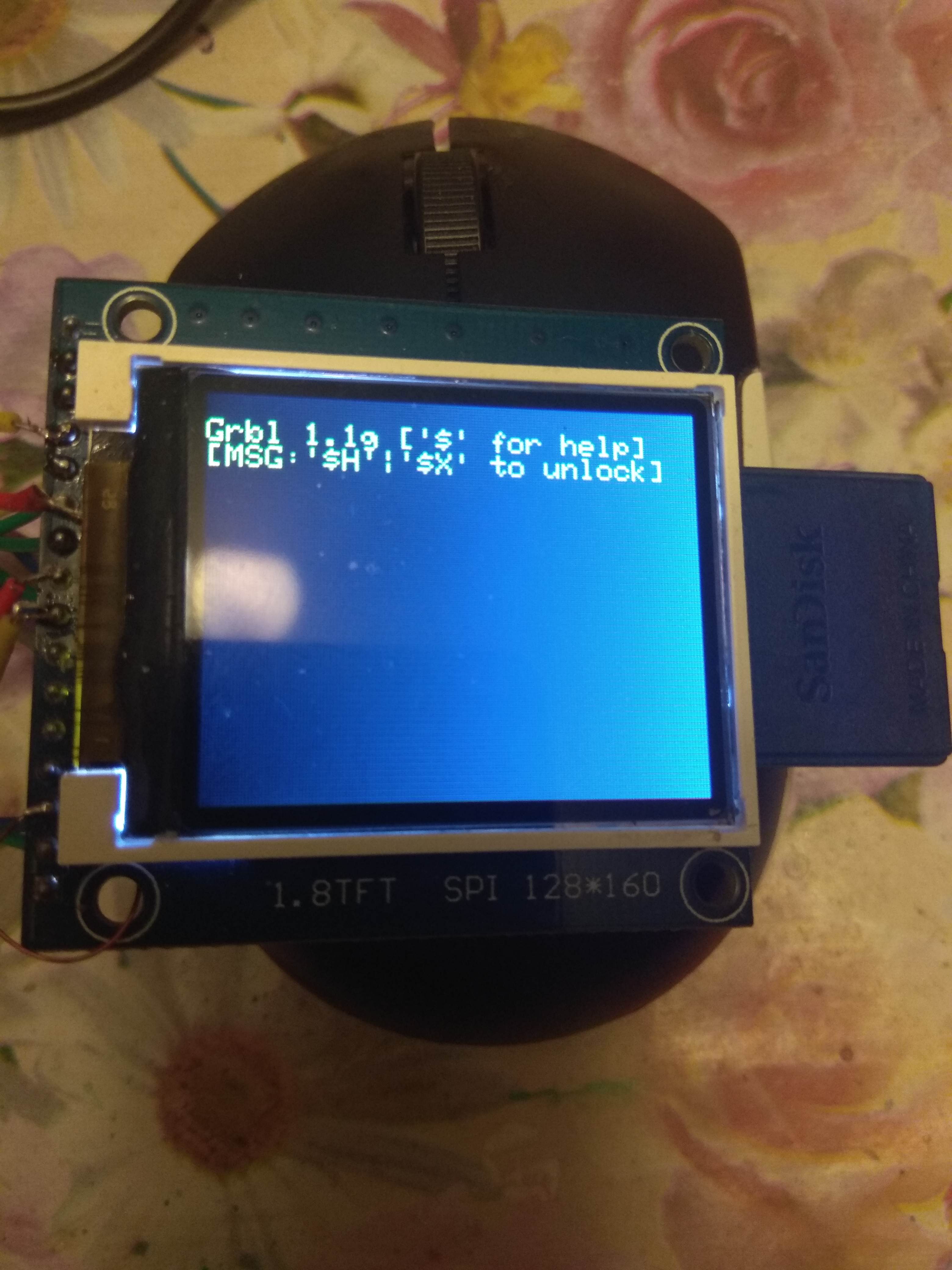 Здравствуйте , мне пришло сообщение но я пока не могу писать личные сообщения по правилам форума, отвечу здесь вопрос был по экрану и подключению у меня тоже не такой как у автора темы но если он на 7735 то ножки должны быть такие-же названия могут отличаться, sck это ножка тактирования подключается к 13 пину ардуины sda ножка данных 11 пин ардуины эти-же пины для карты используются а резет, чип селект(cs) и линия выбора данные или команды (A0) есть в скетче у автора. Если подсветка от питания дисплея то ножка LED не нужна. По поводу прошивки пока нет времени ей заниматься много работы основной и что за контроллер такой 103? А больше не только из за русского я добавил ещё просчет количества строк в файле и вывод остатка на экран и включение лазера для фокусировки переделал немножко инициализацию карты чтоб не надо было перезагружать контроллер. Так понемножку и накопилось.
