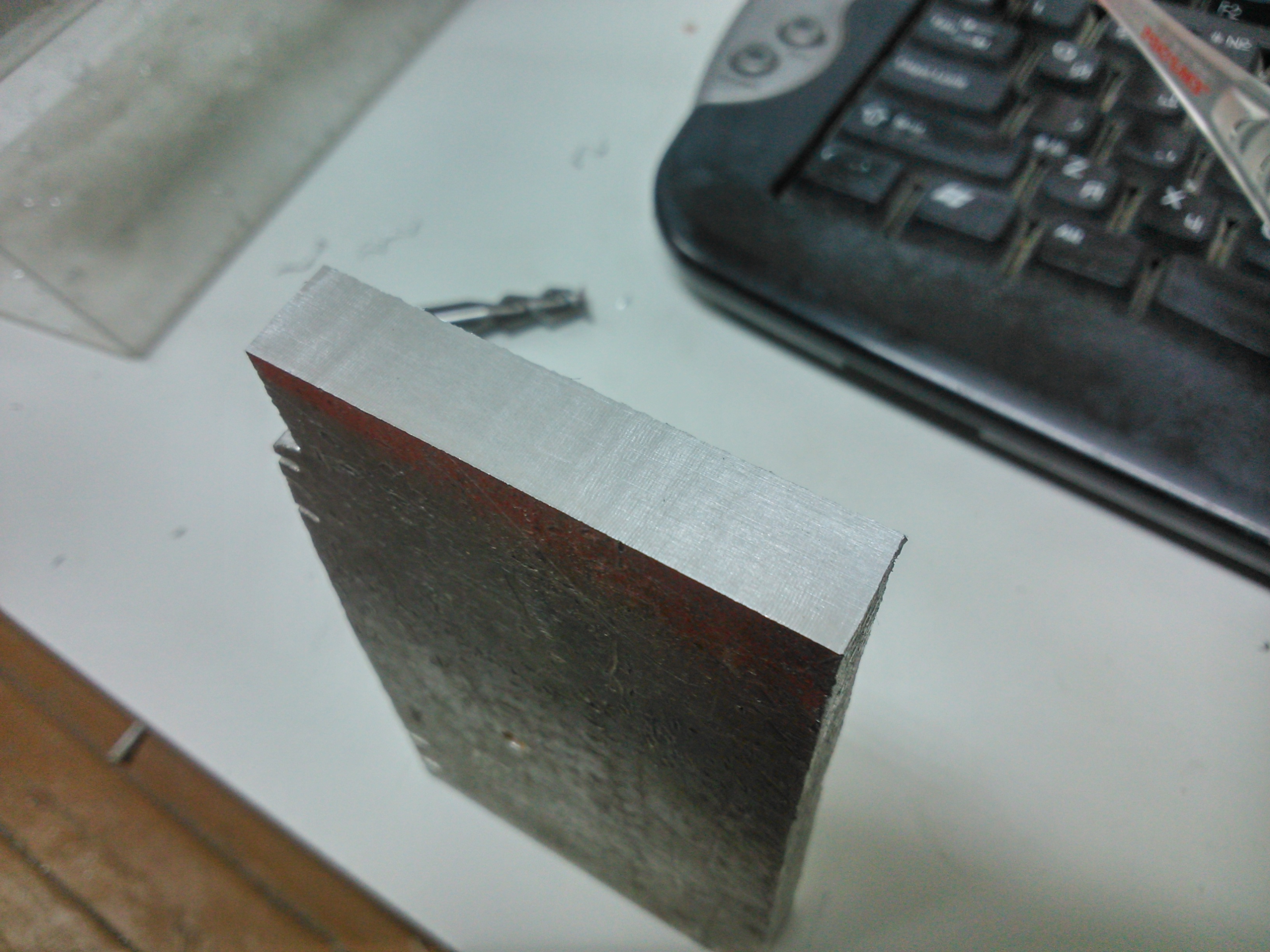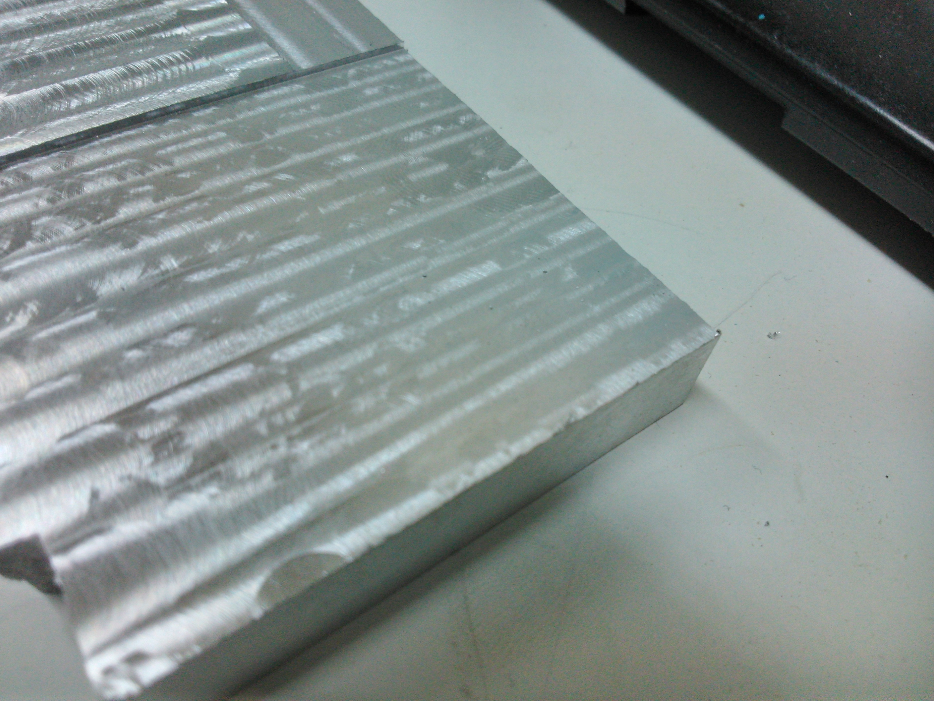 На торце по хуже- дробленка на лицо, и еще интерсный момент- помимо дробленки визуально поверхность получилась волнистой- рукой не ощущается. Грешу на ШВП- когда выставлял перпендикулярность осей X и Y обратил внимание, что при движении индикатора вдоль стола стрелка совершает качания около нуля в полсотки примерно. Видимо биение ноунеймовых ШВП довольно значительно и передается через поводок на портал в виде линейных смещений за счет зазоров в каретках круглых рельс.