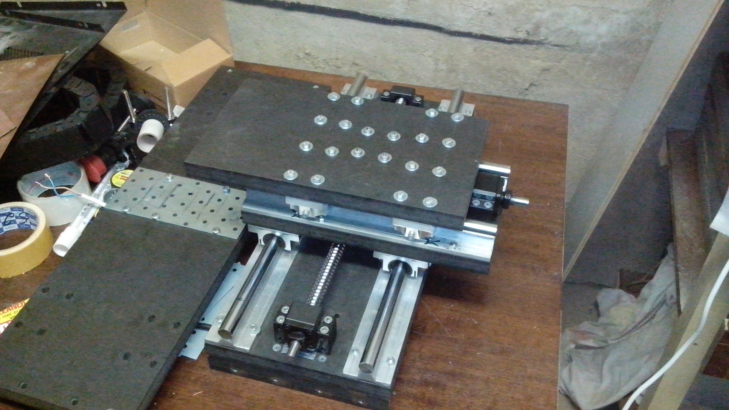Вот. Почти собрал две оси. Осталось сделать крепление движка на оси Z и можно вешать на портал.