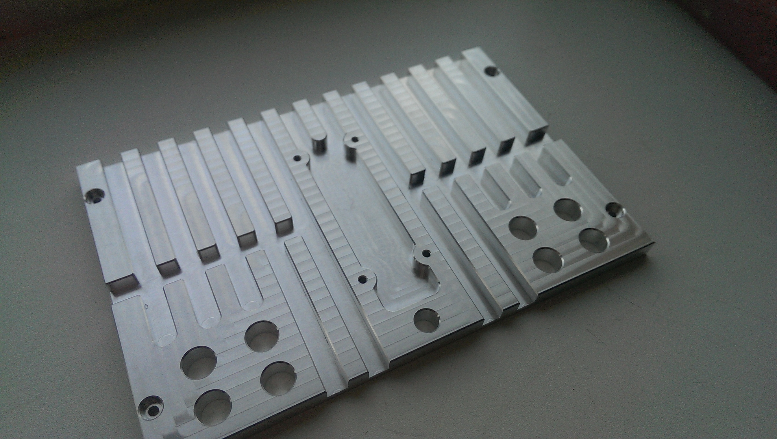Проектные размеры 180мм/120мм. толщина 8мм Реальные размеры - 180,18мм / 120,11мм. толщина 8,05мм. Фрезы 3х заходные - вот этих ребят: http://www.startatom.ru/production/tver ... nstrument/, 8мм для обработки плоскости и контура с углом подъема стружки 30 гр. - обозначение по каталогу 02.08.064.19.00, для внутренней обработки с углом подъема 45 гр. 6мм - 03.06.053.13.00. Сверление ТС сверлами (подача 150мм/мин). Фаска ТС центровки от Маузера.