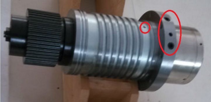 Расскажите, кто знает, что это за отверстия? И зачем они нужны? Как я понял по спирали должно что-то идти(воздух,масло или сож) которая будет охлаждать сам шпиндель...тогда зачем ей уходить внутрь(или приходить от туда)? Нашёл чертежи в интернете, но там нету этого отверстия на чертежах а на фото оно есть... Алексей,у которого я купил данное чудо, сказал мне что вообще никакой документации у него нету и не было, но обещал прислать на почту все чертежи, в итоге я прождал неделю, ничего не пришло, пытался ему писать... ответа так и не последовало((