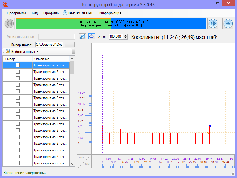 Я создал тестовую УП для определения оптимальной мощности засветки.