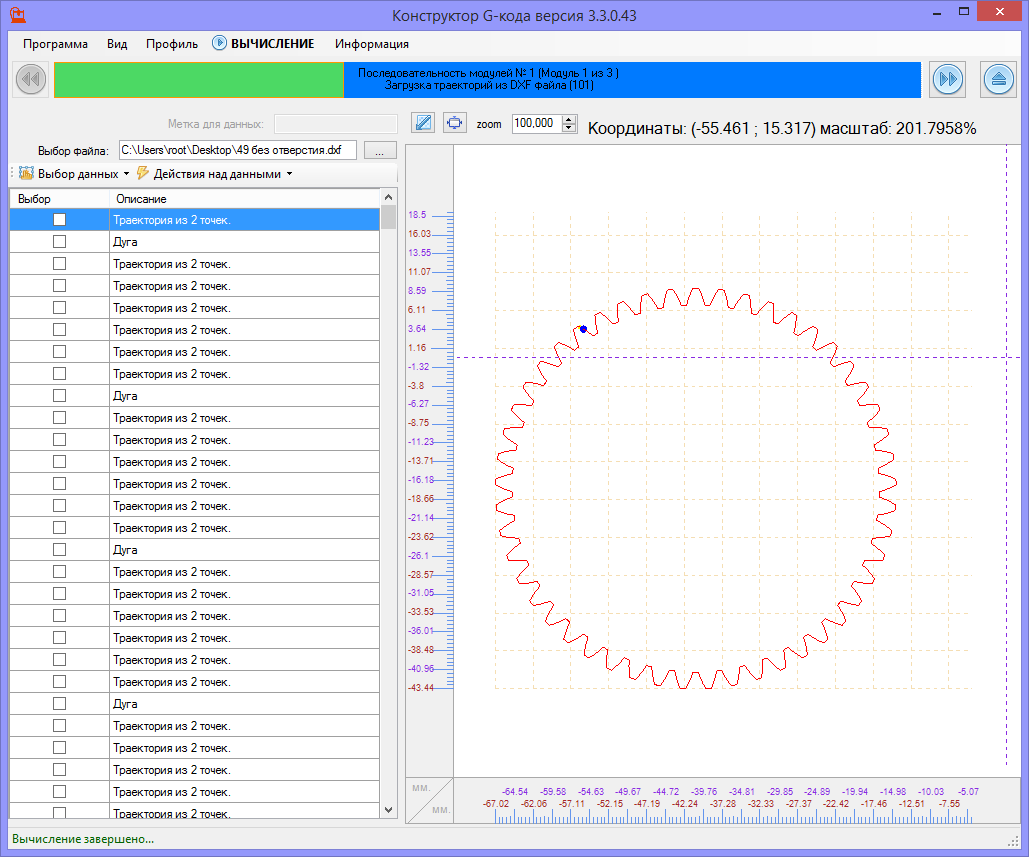В принципе можно вполне обойтись и прямолинейными движениями, для примера берем присланный DXF файл, и загружаем его: