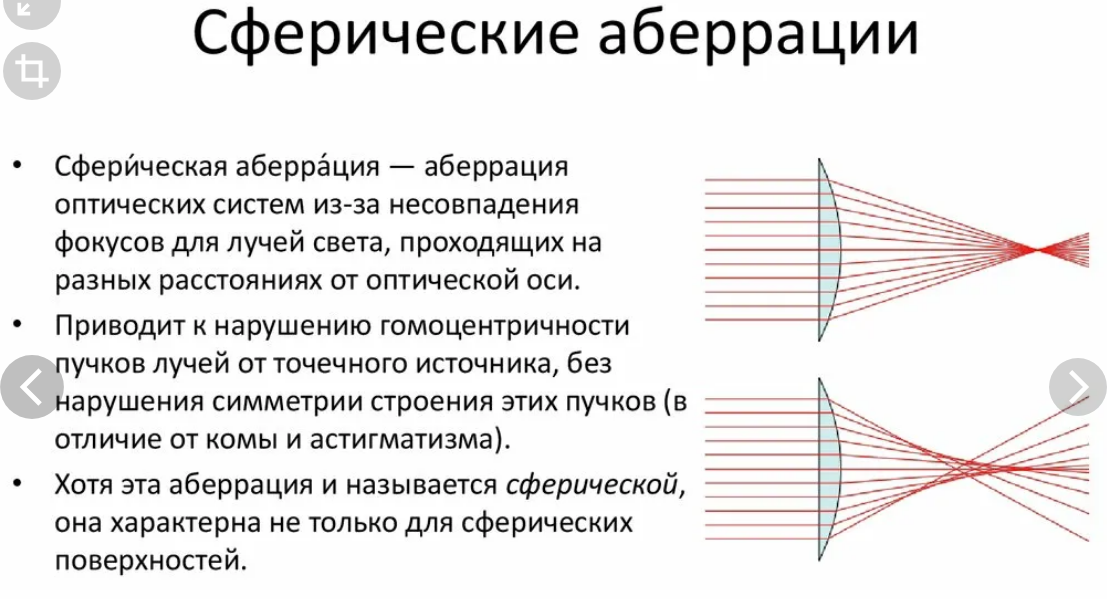 Но для однолинзовых объективов характерна сферическая аберрация (т.е. множественность фокусов):
