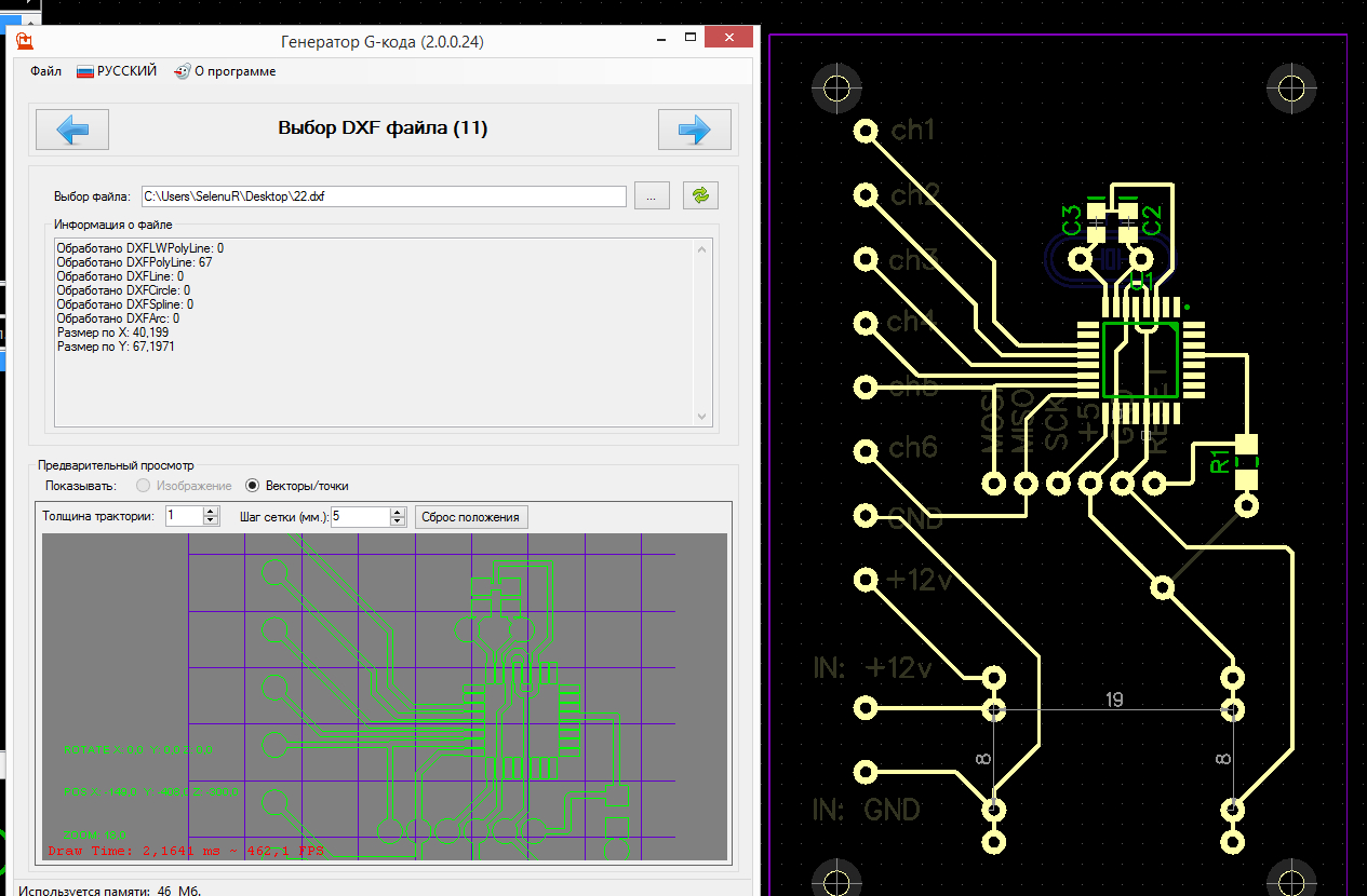 В данную программу я планировал добавлять поддержку формата, Gerber, но случайно обнаружил что программа в которой выполняю разработку радио-устройств "DIPTRACE", умеет формировать DXF файлы с учетом размера гравера, и прочего....
