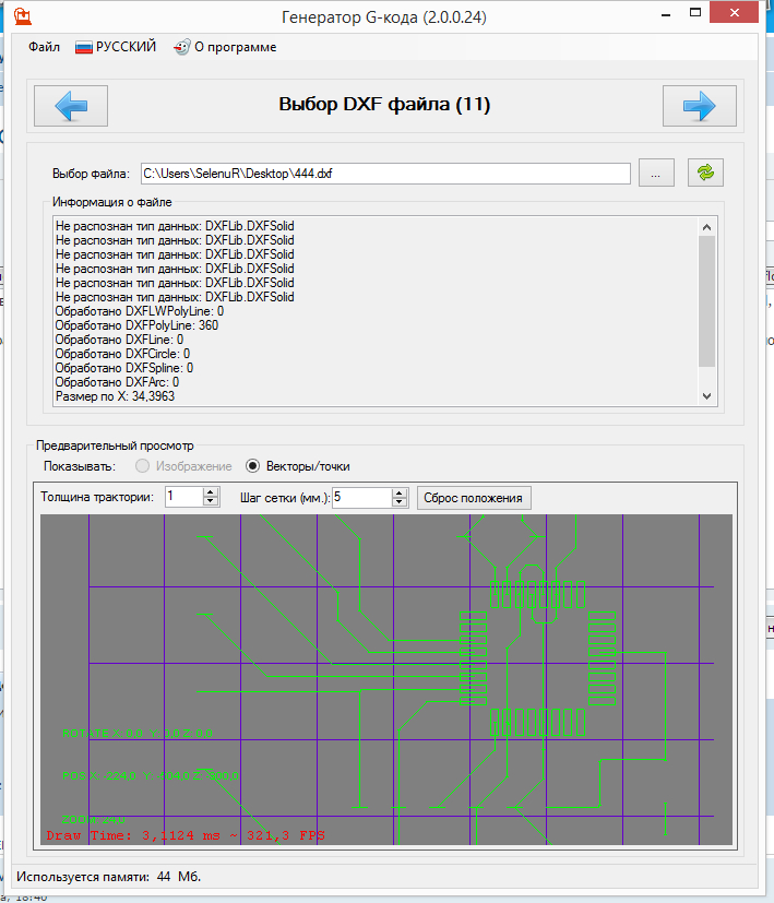 А так-же для одного будущего проекта, засветки дорожек на фоторезисте лазером, получается получать необходимую информацию (пока это просто отрезки, не доделано ещё):
