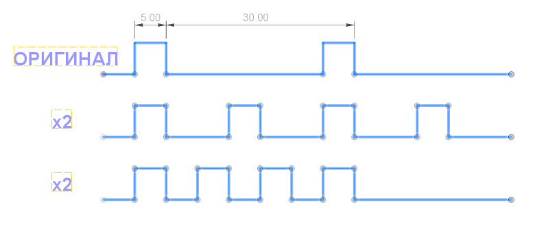 У большинства контроллеров чпу длительность импульсов постоянна. Часто ее можно настроить.MX_Master писал(а): Какой вариант умножения шагов (на 2) правильный?