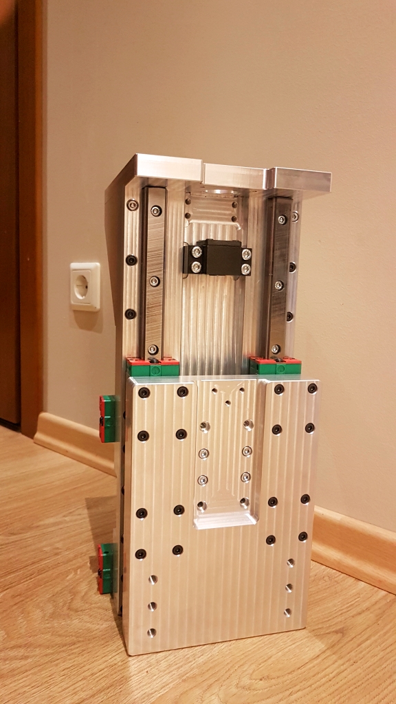 Почти собрал ось Z, взвесил, получилась (все что на фото) 17,2 кг. Прошлый раз немного накасячил на главной плите, решил переделать, теперь все как должно быть, без косяков.