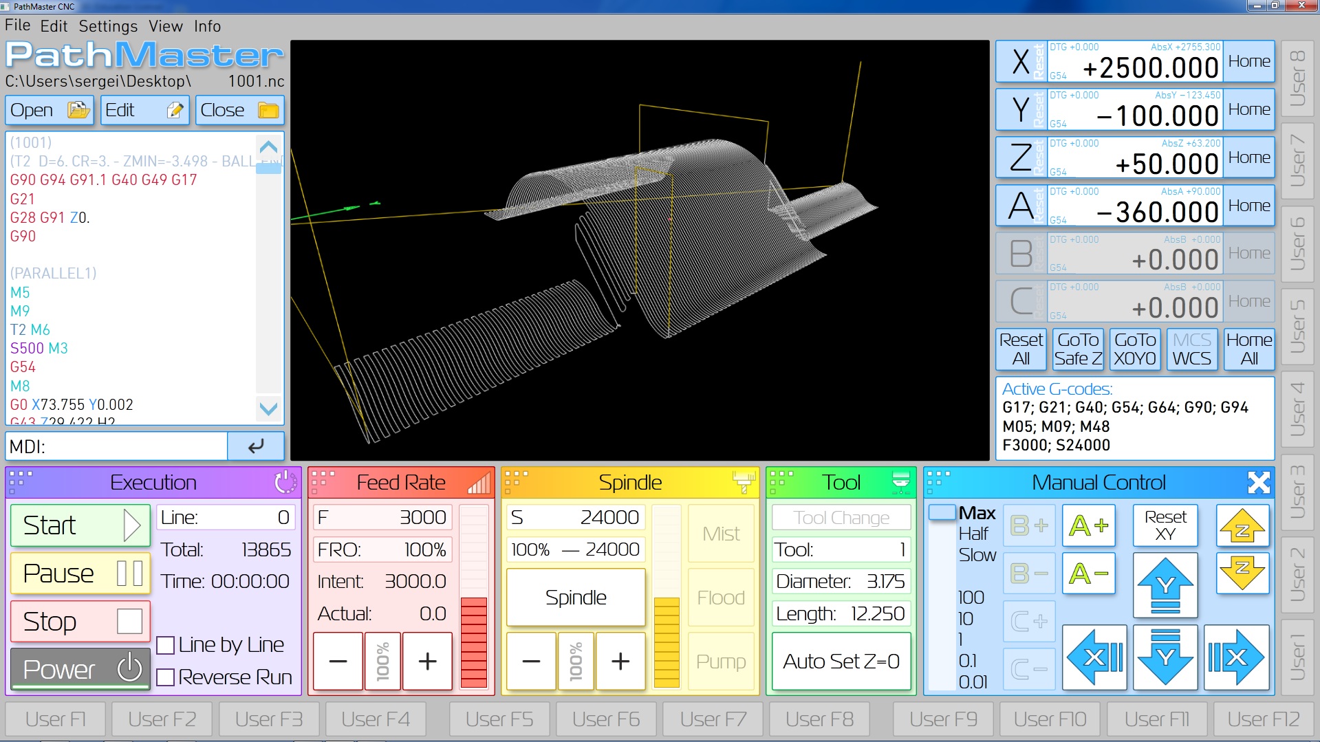 michael-yurov писал(а):Покажите, как выглядит токарная УП в CAM программе? Как она должна отображаться?