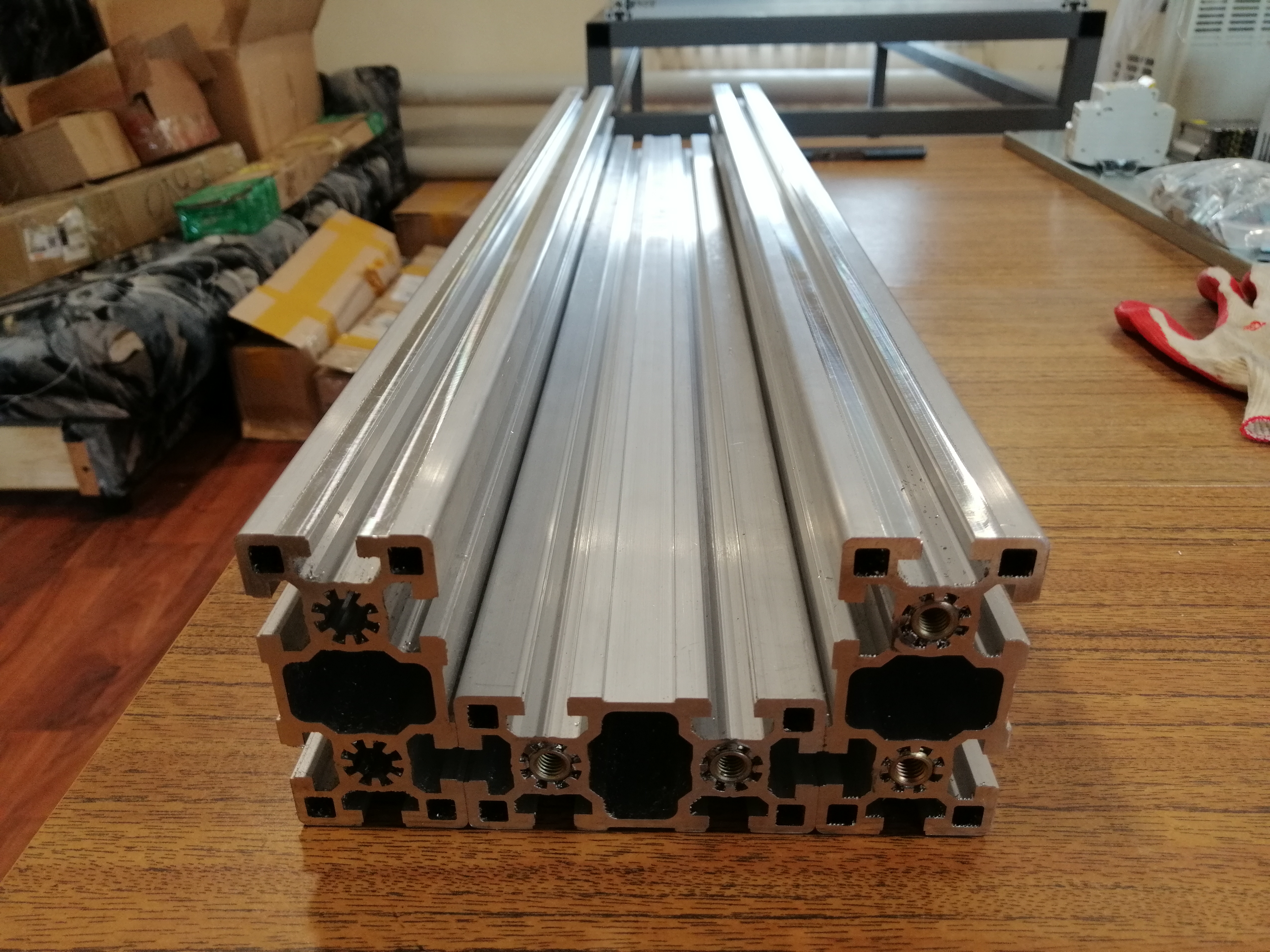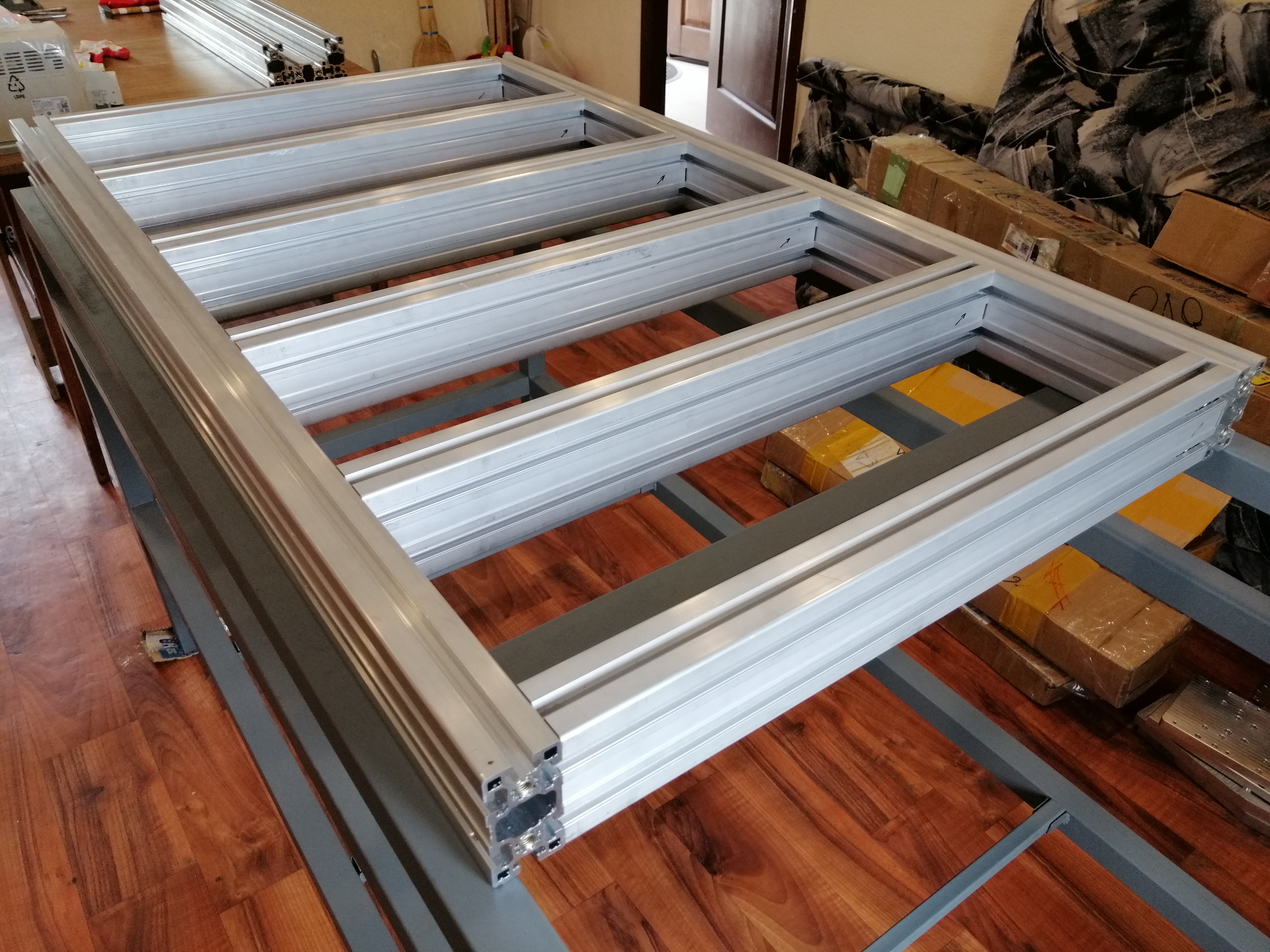 Не много продвинулся по сборке. Для интереса набросил профиль стола от другого станка, по умолчанию будет стол из МДФ.