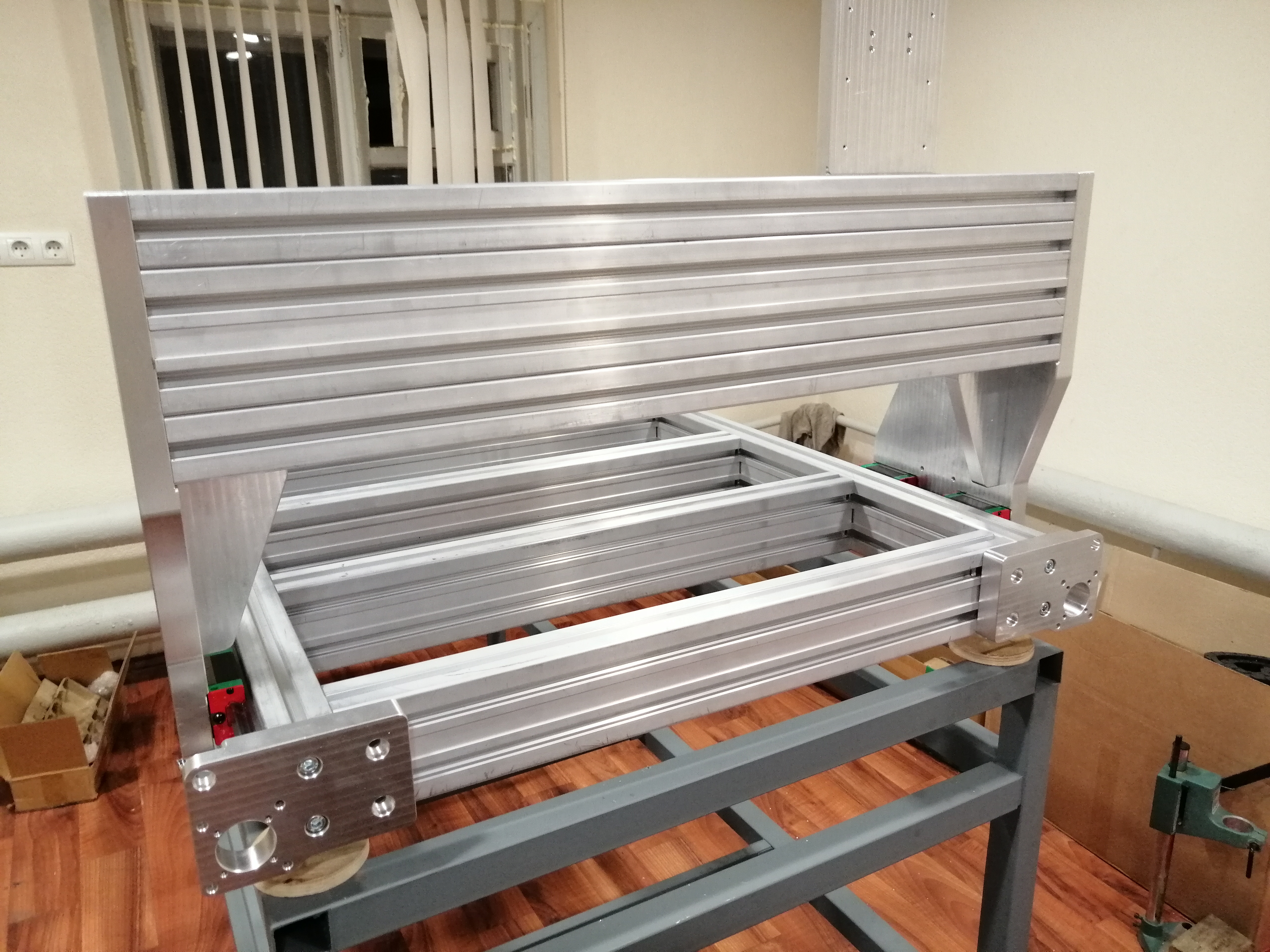 Собрал раму и балку портала. На портале пропылил базу под рельс.