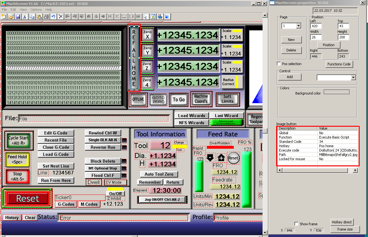 Если вопрос еще не закрыт - судя по 1-ому скрину, изначально на эту кнопку "RefAllHome" прописано выполнение VB скрипта, который потом можно добавить/отредактировать в самом Mach3.a139st писал(а):.