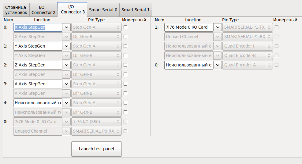 а если отсоединить 7I76 от 5i25 LCNC ругаться бутет на ее отсутствие? Сколько вкладок смарт сериал должно быть 1 или 2? при осоединении и присоединении кабеля шаговик дергается. LCNC не реагирует, на отключенную 7I76.