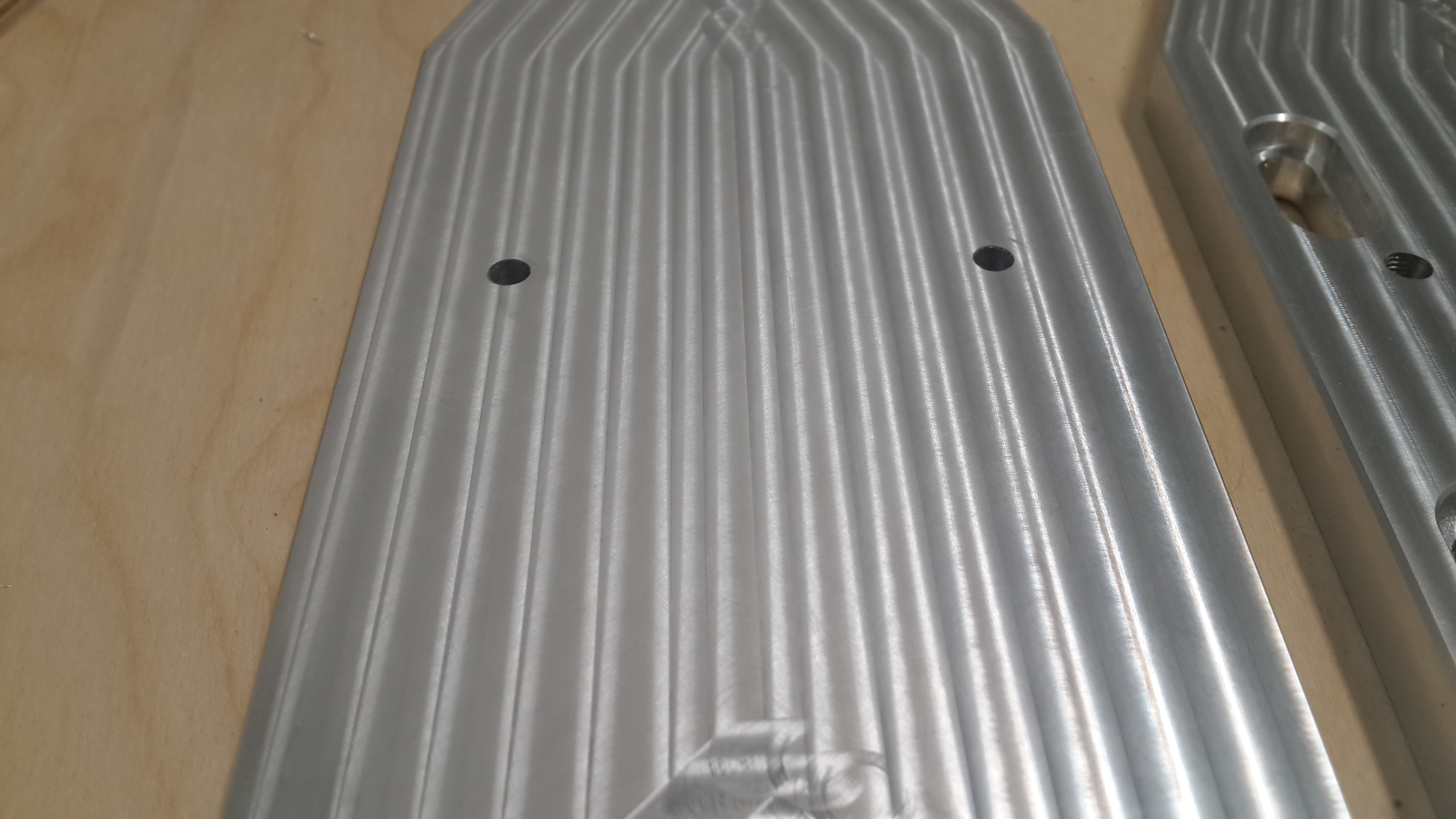 Но в принципе подобрал режим на котором это менее всего выражено. Фреза 8-ка, обороты 15к подача 3000мм/мин по 0.1мм за проход. Сначала с одной стороны десяточку снимаю, потом с другой одну-две десятки в зависимости от толщины плиты. Тогда почти не заметно поводок.