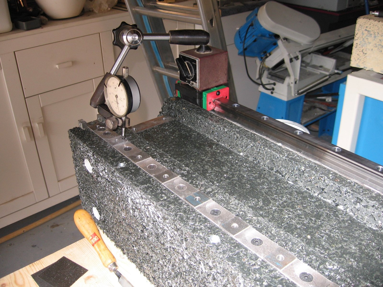 К сожалению, не получиться. Хоть и маленькая но усадка все равно есть. У самых лучших смесей в хороших условиях 0,02% есть, а это 0,2 мм/метр.fabrikator66 писал(а):Хочу заменить основание из поверочной плиты, на плиту из полимер бетона, идея сделать закладные гайки прихватить их к шинке, и положить на гранитную поверочную плиту торцами, в нужных мне местах, зафиксировав как либо (еще не придумал), по периметру плиты сделать опалубку из ламинированной фанеры, к ней тоже прикрутить несколько закладных гаек по предварительно просверленным отверстиям, ну и залить все это полимер бетоном, интересует вопрос, сохранит ли данная конструкция плоскость и геометрию после полимеризации, или можно даже не надеяться?