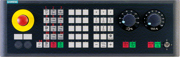на пульте сименса дико не хвататет  кнопок  уменьшения скорости G0,   как например на фануке есть 0% 25% 50% 100%   сами цифры прописываются.
