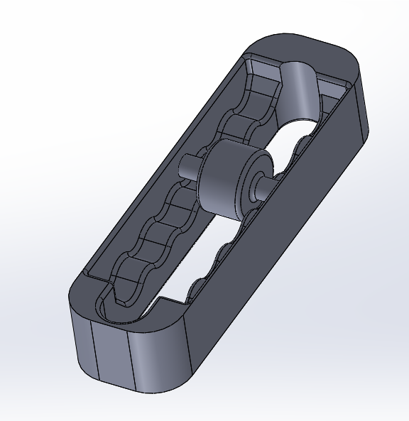 Кладется такая вставка. Она накрывается тисками. При проектировании волна во вставке согласуется с волной в тисках так, чтобы образовывался паз шириной в диаметр оси бобышки. После чего эта бобышка будет иметь возможность скользить в пазу, но никуда из него не денется.