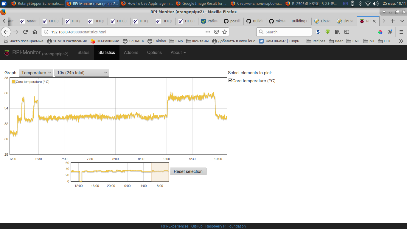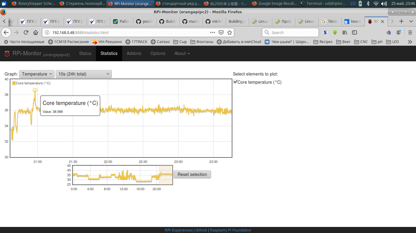 Jim Raynor писал(а):Ребята, столкнулись с одной проблемкой при работе с этой системой. При тестирования большой программы обработки после 3 часов непрерывной работы Orange неожиданно повис намертво, а после перезапуска той же программы опять завис но уже значительно раньше. Кроме того, если поверх открытого axis запустить например браузер, то система тоже зависает. Подскажите, кто в курсе, в чем может быть проблема? Используем Orange pi pc, шаговики nema17, драйверы tb6560.