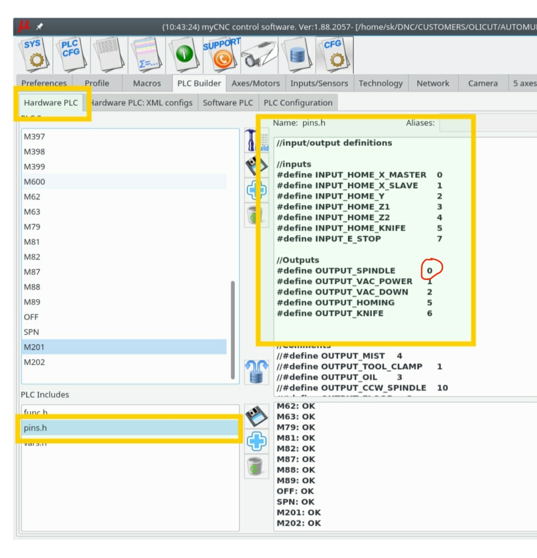 Либо непосредственно в процедуре М3 и М5 вместо output_spindle прописать номер выхода.