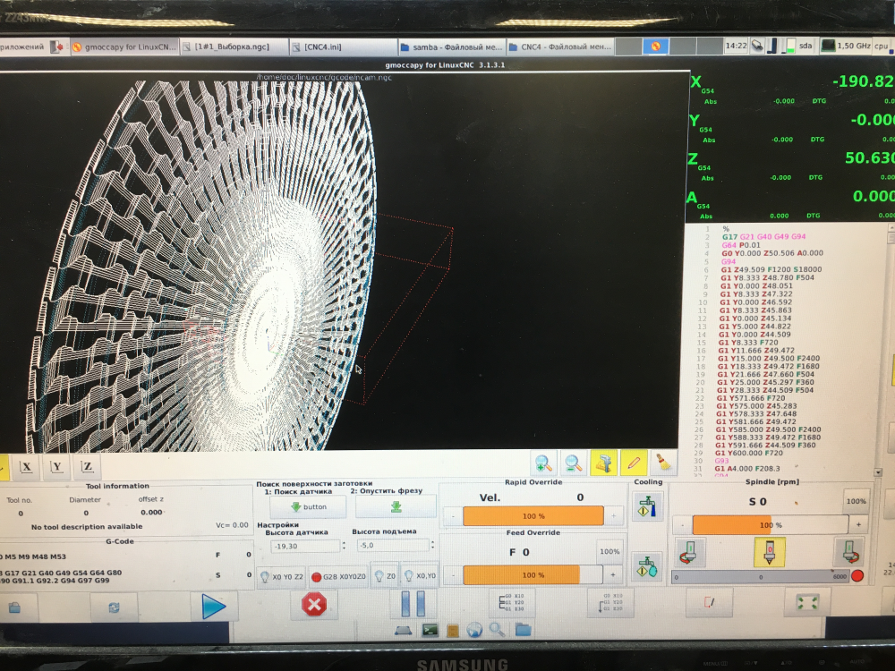 Доброго времени суток. Подскажите почему может не показываться траектория поворотной оси? Хотя при этом программа выполняется верно, все оси крутятся. GEOMETRY=XYZA в конфиге есть, если изменить как написано в шапке на GEOMETRY=АXYZ то траекторию разворачивает относительно X. Как сделать поворот по Y? Сама траектория написана для поворота по Y. Прошу прощения если уже разжевывали эту тему, но я пока все равно не догоняю(((