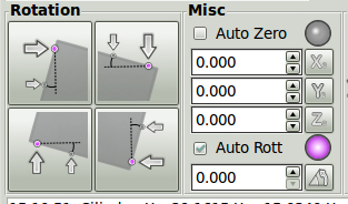 Если пользователь хочет, чтобы после обмера найденная точка стала нулём (или какой-то конкретной координатой), то нужно выставить "галочку" Auto Zero и заполнить нулями (или нужными числами) поля для координат XYZ, расположенные под этой галочкой (при этом автоматически будет выполняется команда сдвига координатной системы G10 L20 P0 X... Y... Z...). Если эта галочка отсутствует, то программа ничего в системе координат не меняет, только информирует. Такая же история с галочкой Auto Rott (команда G10 L2 P0 ...).
