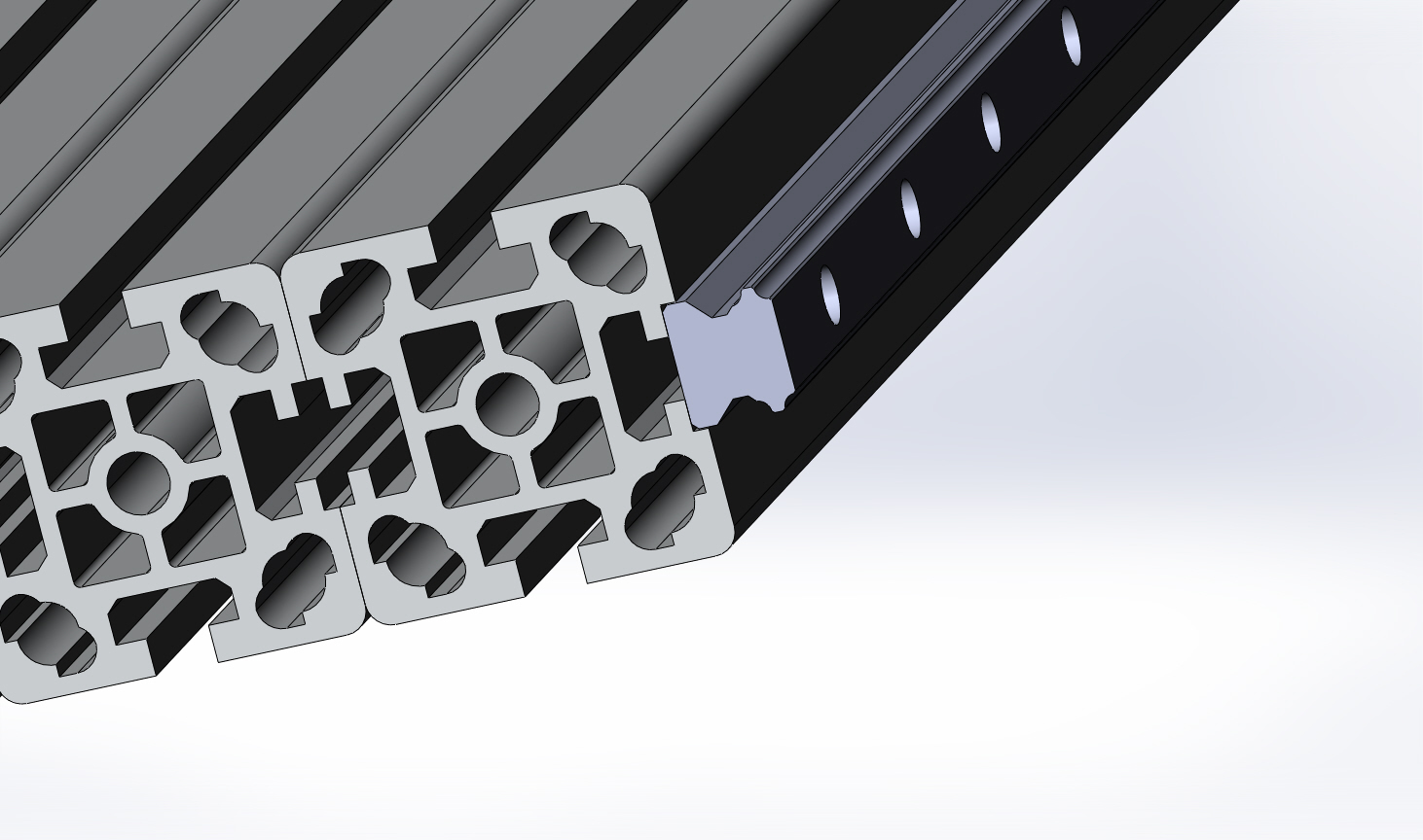 В паз под направляющую нужно будет вставить пластину 6х20 мм и через неё прикрутить 15-ый рельс: