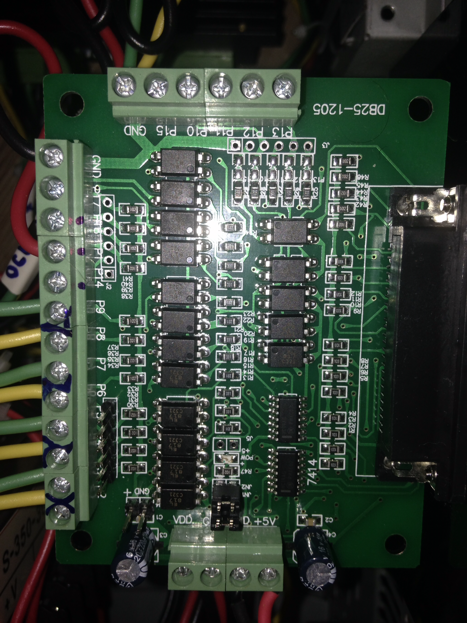 Спасибо michael-yurov Был перерыв из-за болезни:( снова вернулся к станку. Проверил всё и оптопару, пришёл к выводу что всё рабочее. Но вот с платой развязки DB25 -1205 непонятки:( Подключил к портуЛПТ больше ничего не подключал, включил ПК и загорелся светодиод питания, проверил напряжение везде и на всех пинах 4.1в. Запустил Мач индикатор потух а напряжение везде установилось 1.27в. По идеи такого не может быть. Может пробой где:( Схемы нет, куда тыкать не знаю. Прошу совета. С уважением.