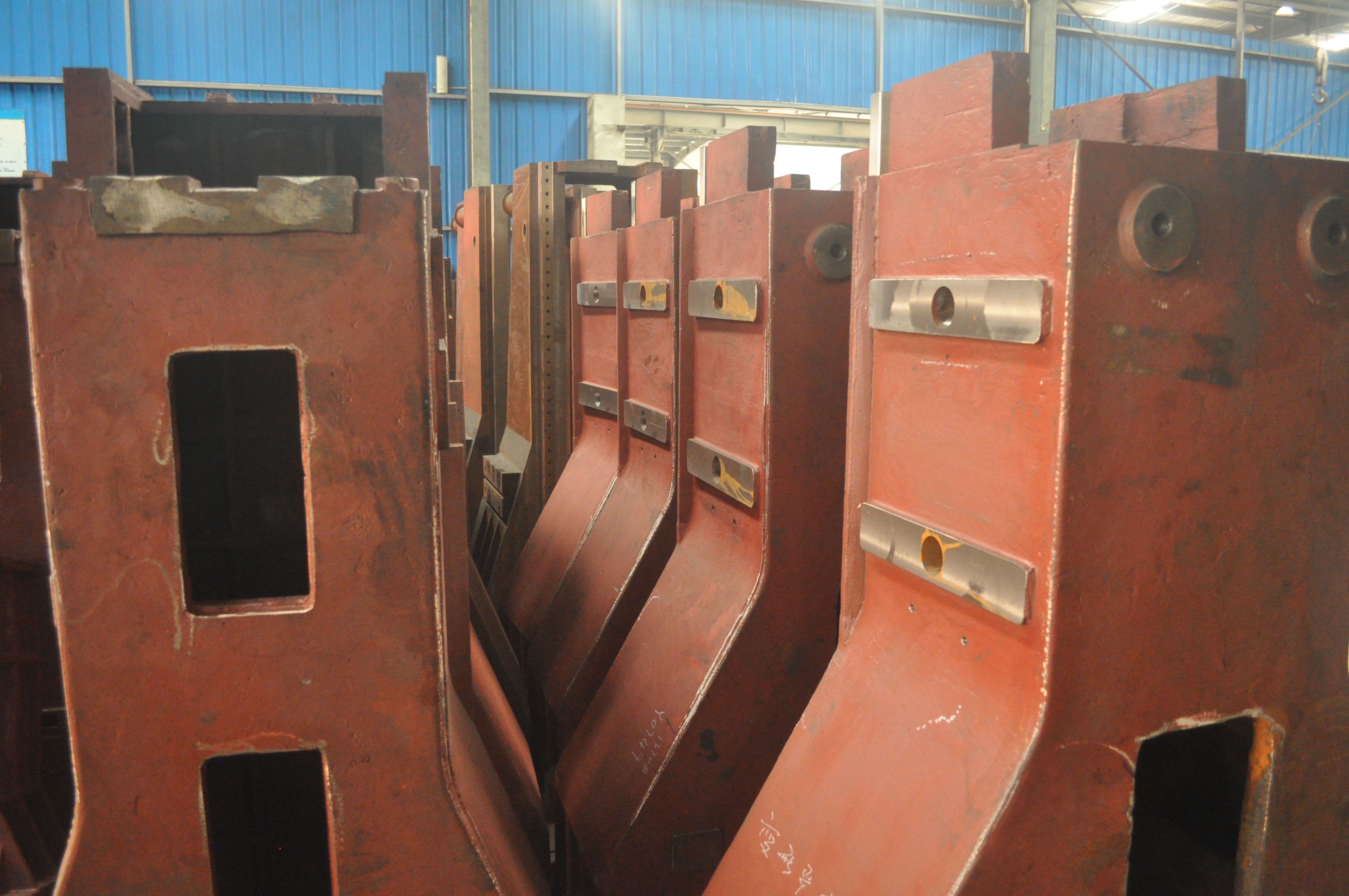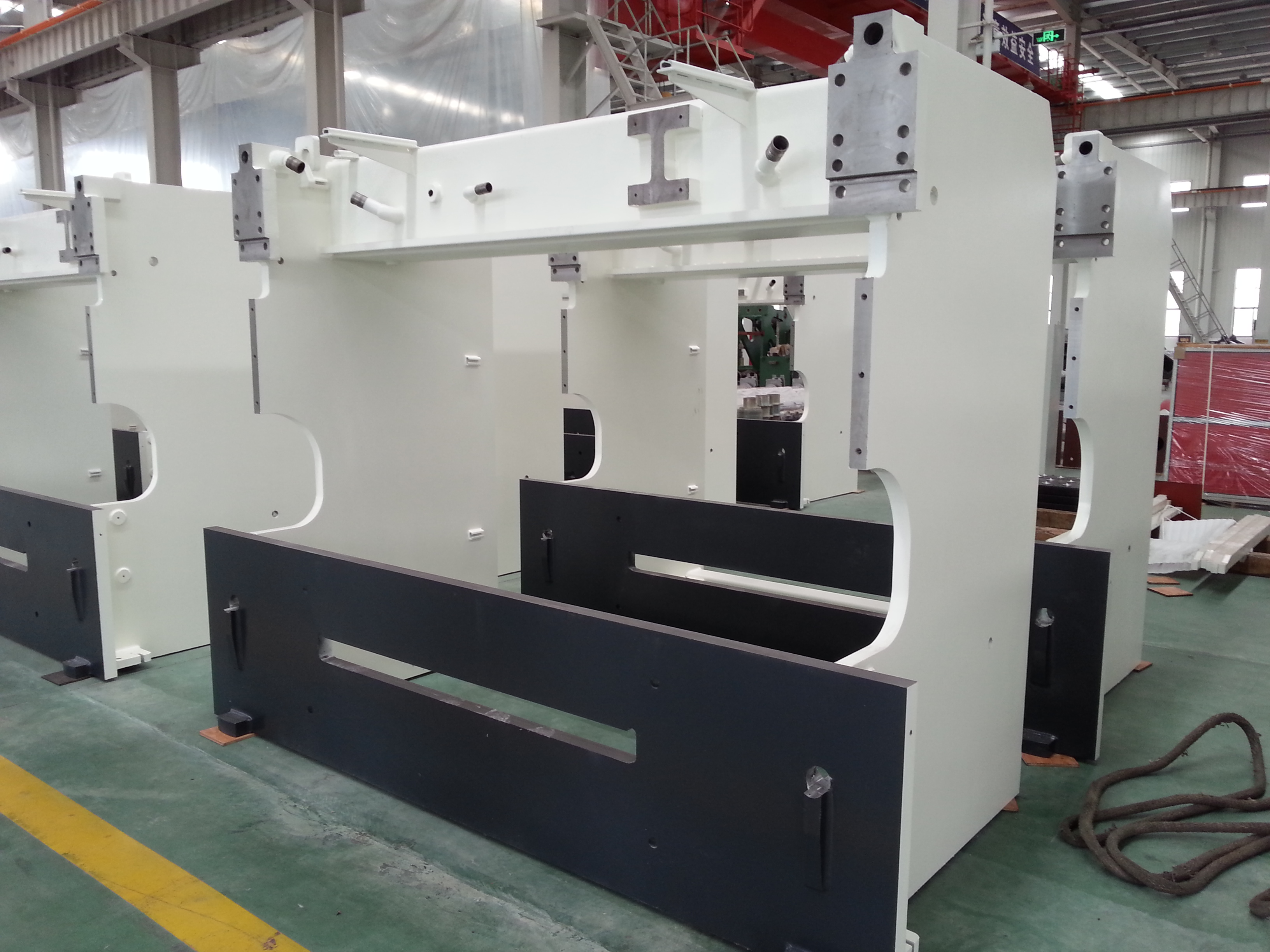 Те станины на фото, которые без прорезей, это станины гильотин.
