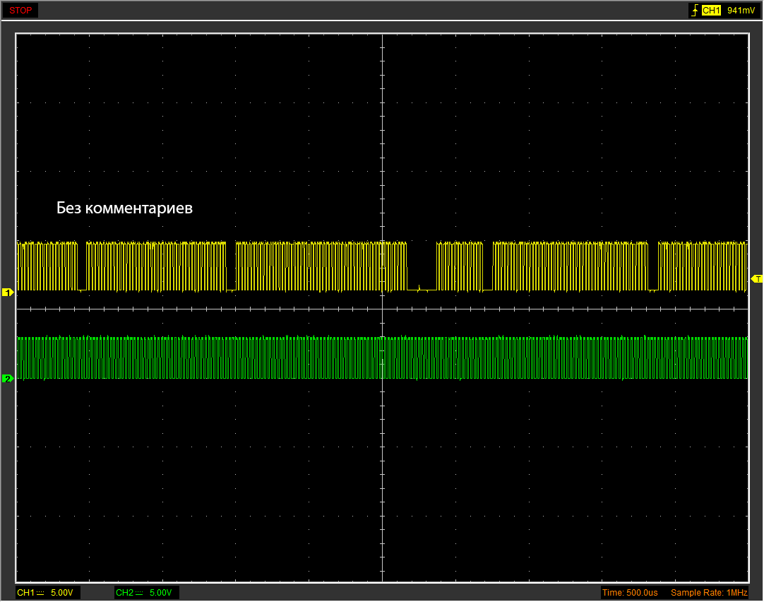 asutpka писал(а):3 В скриншотах осцилографа в нижнем правом углу продолжительность времени. Чему оно равно - клетке? всему экрану?