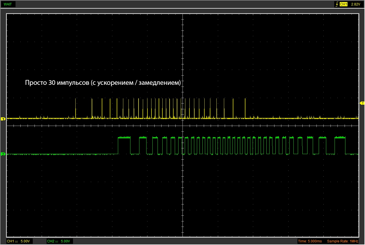 У меня есть пауза после последнего импульса Step перед сменой направления, и небольшая пауза перед последующим импульсом.