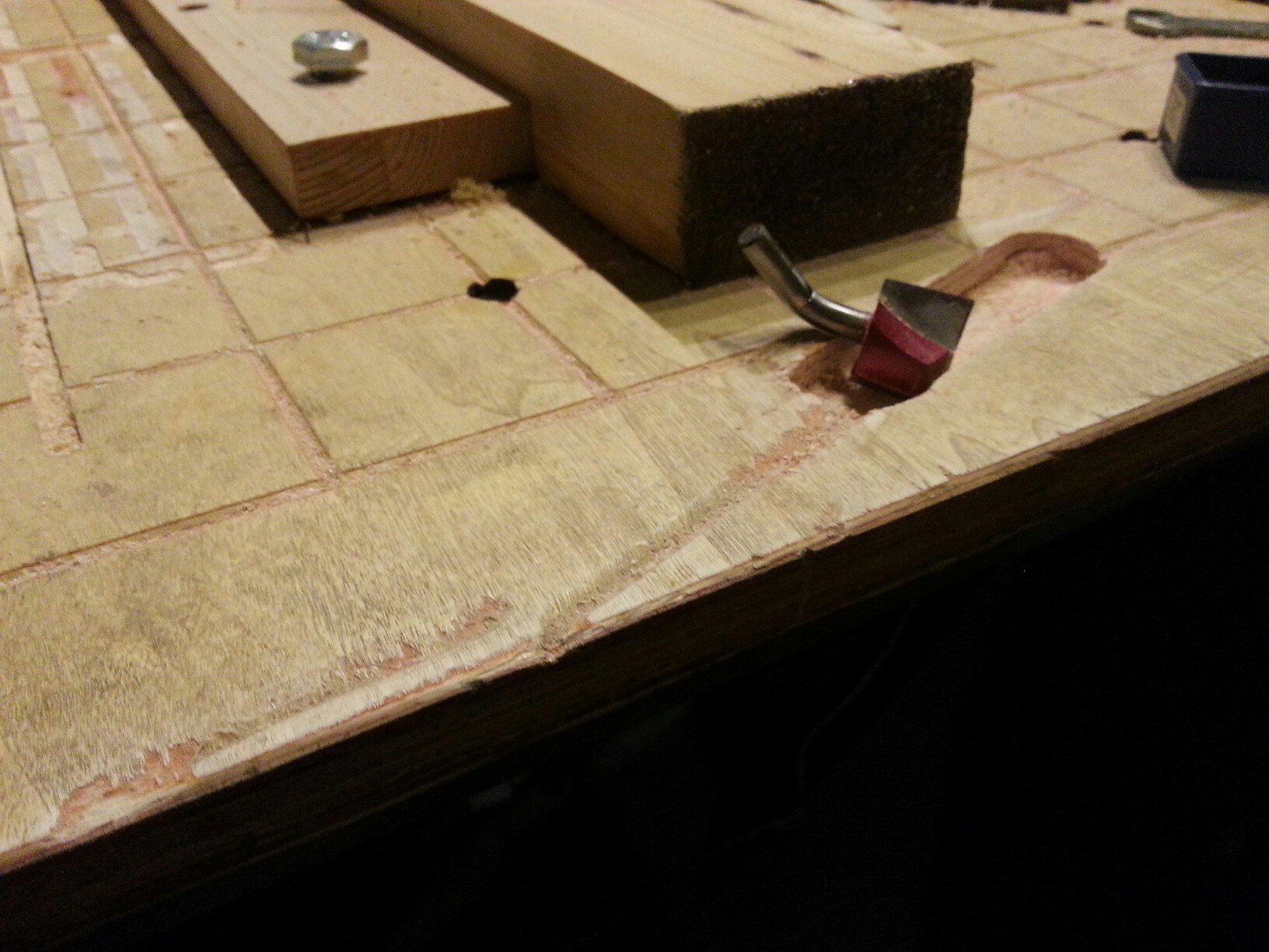 долгое время использовал один только Арткам. Решил попробовать МастерКам. Нашел постпроцессор, в общем настроил, получил траекторию, фрезеровало оно нормально, но в конце фреза резко ушла в стол и быстро-быстро поехала в аппаратный ноль станка. последствия на фото. В итоге осознал, что есть такая вещь как G28 которая направляет нас в reference point. Также доставляет предположение о том что я знаю вылет инструмента. А я ведь вылет инструмента замеряю каждый раз ручками - ну нет у меня сейчас автосмены инструмента, что ж делать... А какие-то значения я прописать должен в tools-базе данных, для компенсации инструментов.