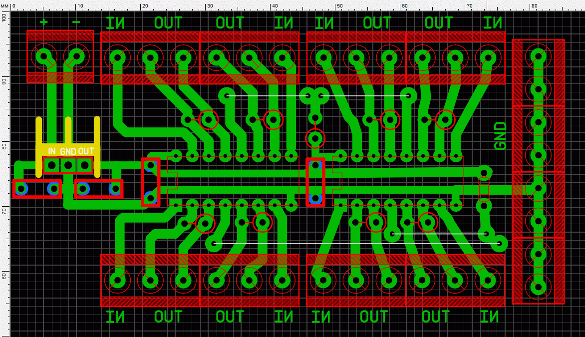 Собственно коллеги, кто шарит в электронике и имеет желание - гляньте плиз. может что подскажете. есть устойчивое желание как то сгруппировать входы-выходы, но все попытки ведут к нарастанию гемороя с перемычками, пересечением дорожек и тд и тп. двух-трех-десяти-слойные платы просьба не предлагать