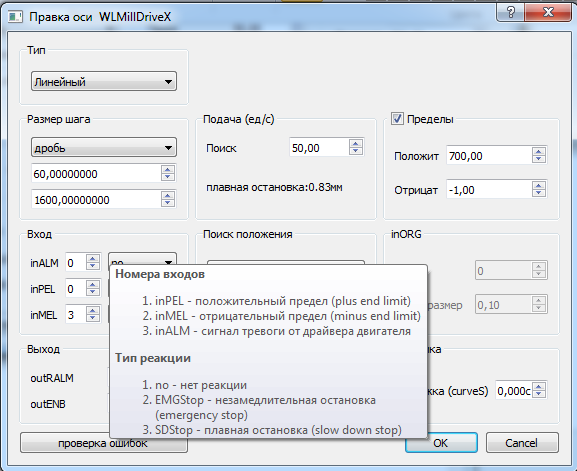 Были добавлены подсказки для входов выходов,при настройке оси. (при наведении на соотв. блок)