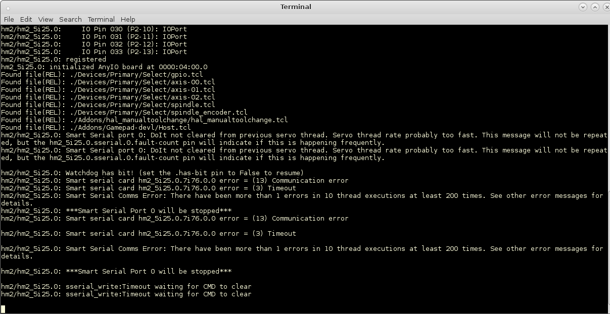 Как я понимаю hm2_psi грузится,5i25 специализируется, но Smart serial во время не отвечает.