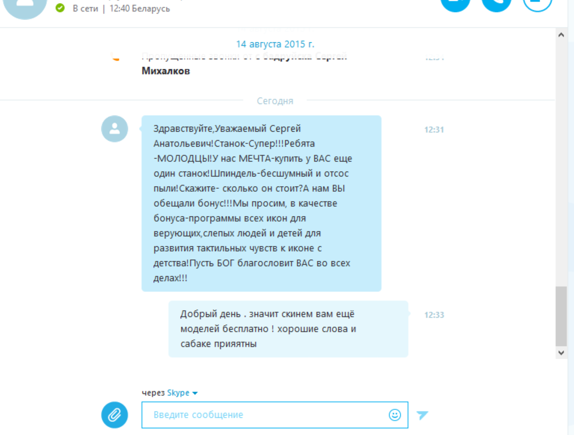ВЫ перепутали переписку я не про вас писал про обмен станка ! вам мы станок поменяли! это другой человек почитайте переписку! да если помните это я вам сам предложил это сделать и вы меня не просили об этом! или это тоже фейк! да те люди что писали не работают у нас война всех разогнала !