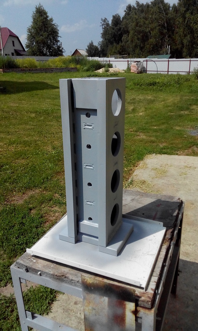 Новая колонна, порезана из металла 16мм, внутри 3 переборки, которые заодно служили кондуктором для сборки изделия перед сваркой. Сварено, отожжено, отпескоструено, грунтовано. Дальше фрезеровка лица и зада, потом шлифовка, а потом самое интересное, фрезеровка под рельсы...