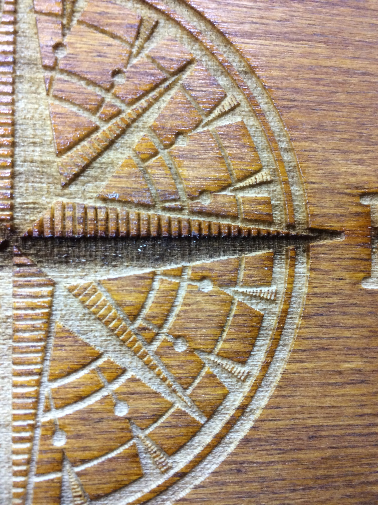 Вот пример гравировки кривой - видно, что вначале лазер мощнее работает, потом мощность падает, потом снова нарастае