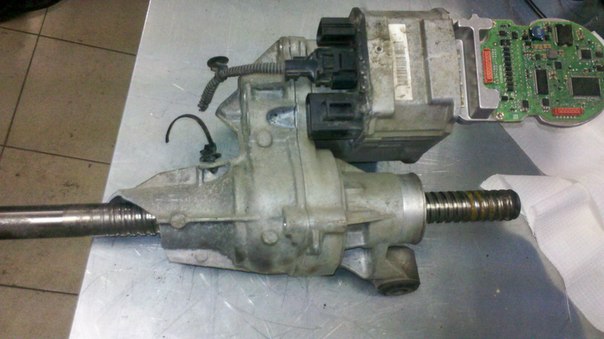 имеется фрагмент электрической рулевой рейки от неустановленного легкового автомобиля а это от мерседеса CLS , копрпус акпп и рейки из магниевого сплава, болты этих узлов из алюминиевого сплава , а подшипник в рейке китайский.... мотор там типа BLDC,имхо, на сборку драйвера инфы с хода не нашлось.