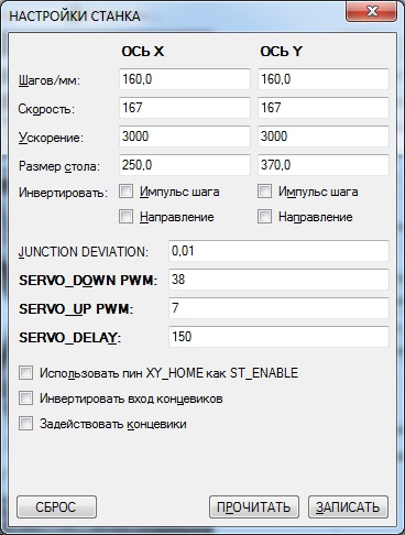 Тоже собрал этот контроллер для лазера, поставил его на механику от 3dpburner. А теперь собстенно вопросы:
