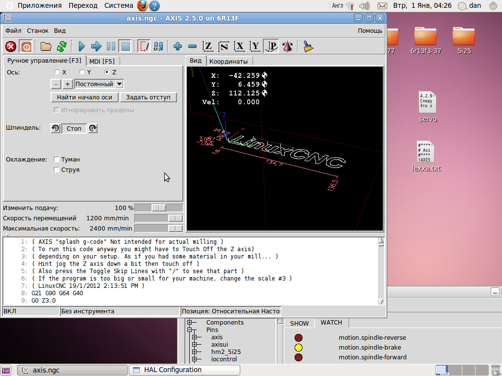 еще учти что пин motion.spindle-brake = 1 всегда, когда шпиндель должен стоять!!!