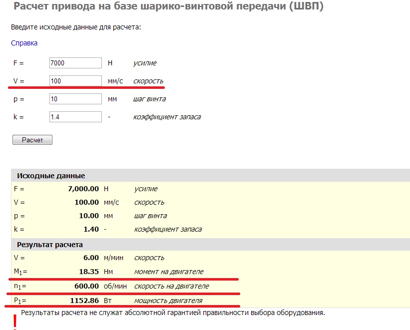 Картинка с расчетом в начале страницы, судя по которой требуется двигатель мощностью более 1 кВт.