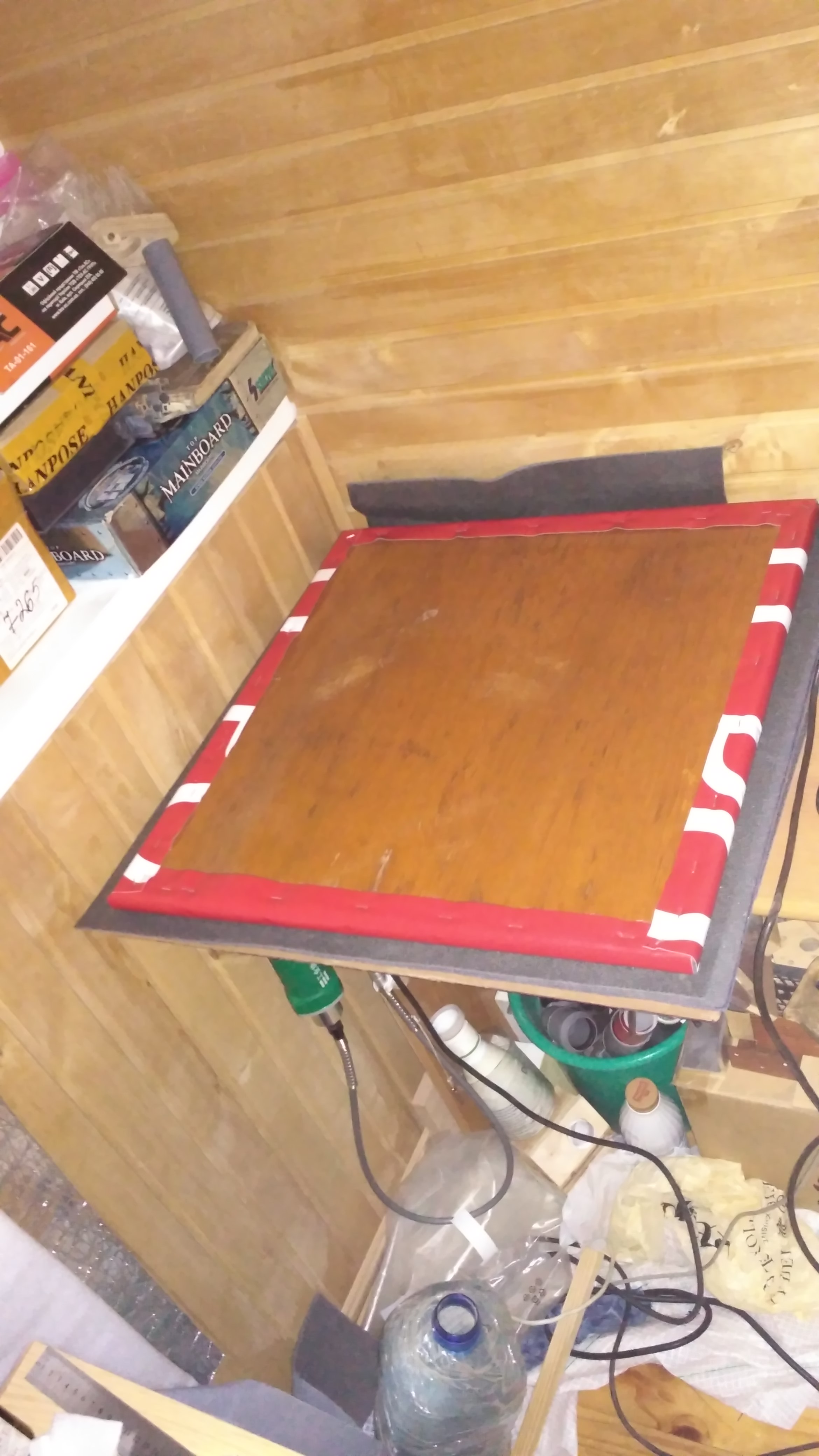 Обшил дно по периметру банером с пеной. Получился мягкий бортик, не рвется при надевании стенок. Заодно перекрыл щель между полом и стенкой.