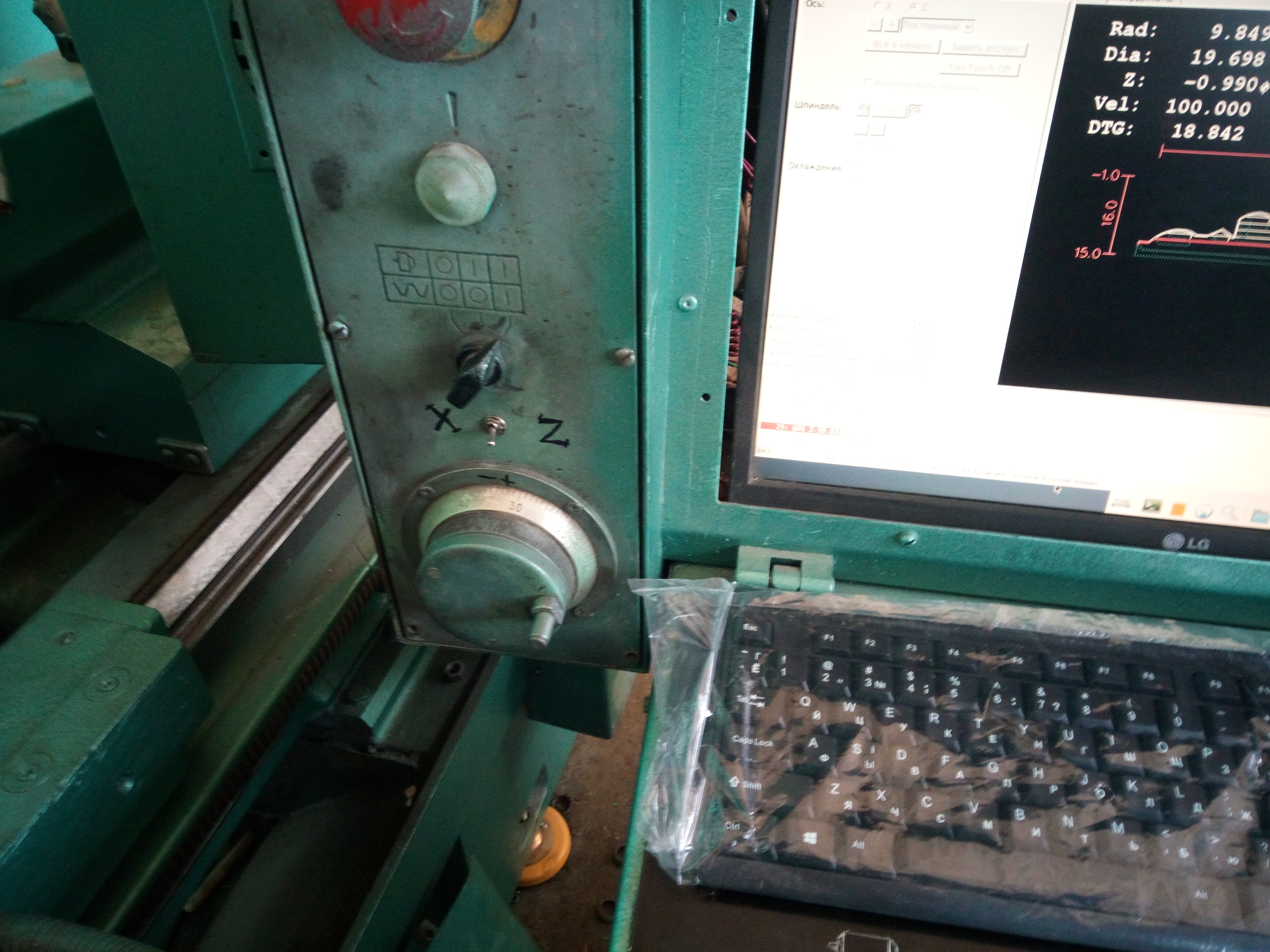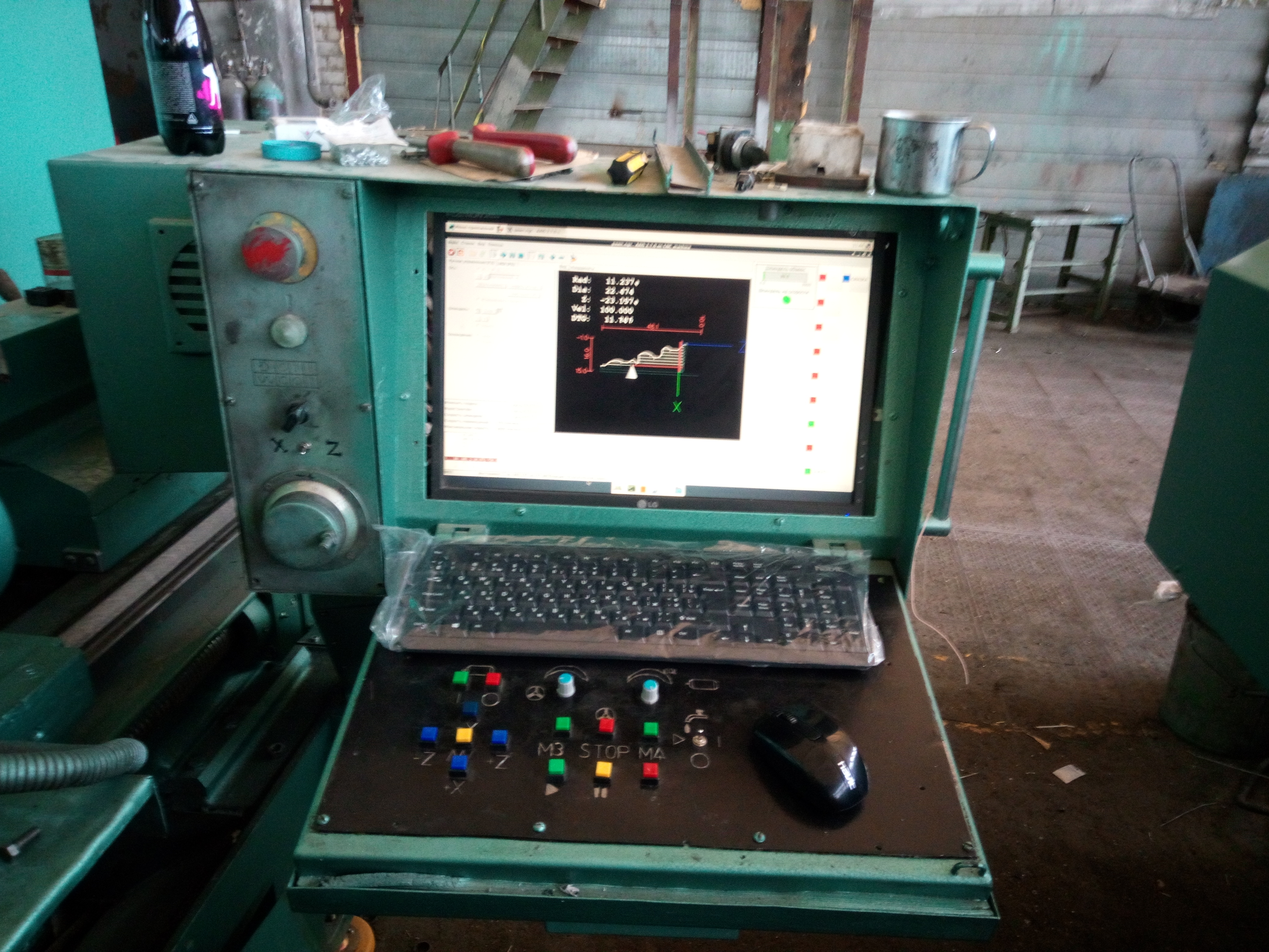 Стойка управления на станке стоит родная, планируем менять, но в следующем году. А писать программы надо сейчас