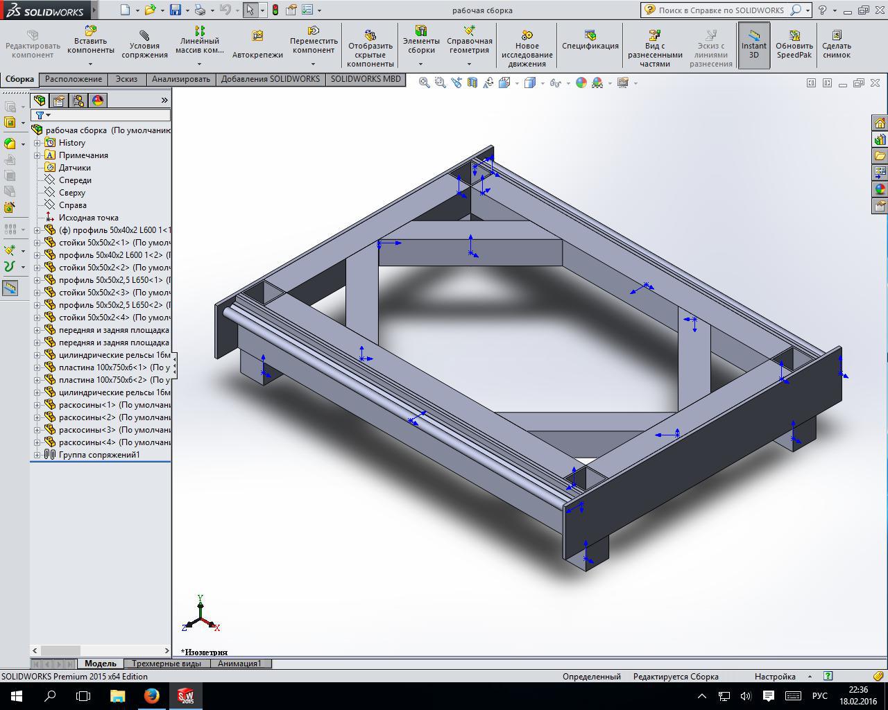Вот что вышло в итоге, первый дельный вариант, стальной профиль 50х50х2,5, в основании 8мм сталь, портал из 12мм стали. Некоторые моменты, как то крепление ШД и связка с трапецией пока не продумал, но пока не суть важно, главное конструкция.