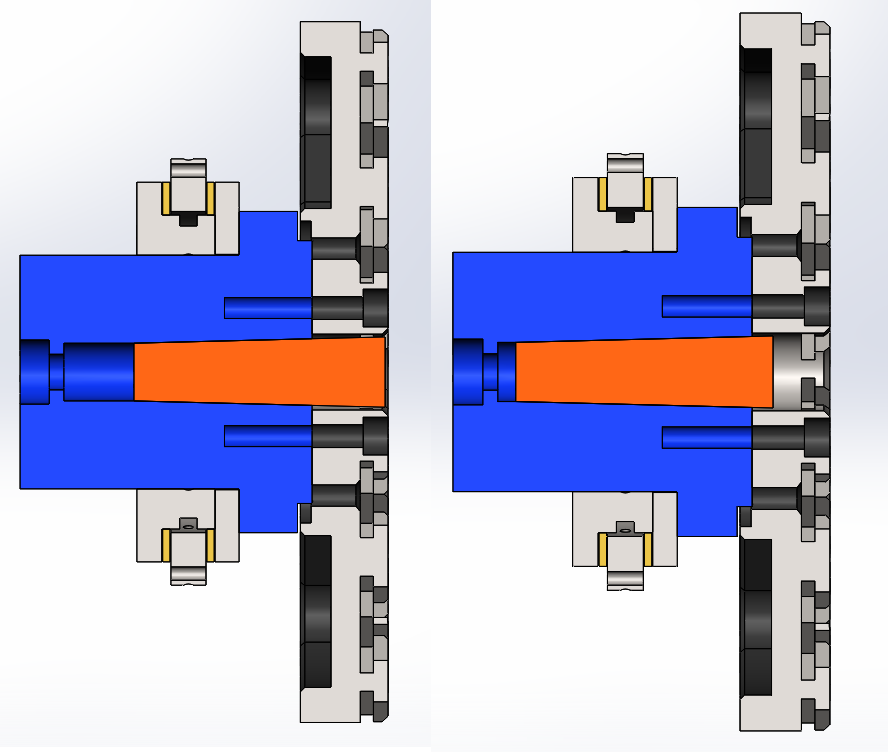 прыгнем снова к желаемому - 5 ось, как уже писал выше по центру планшайбы хочу устроить дупло КМ3, дилемма или садить конус полностью - тогда фиг засунешь такие штуки
