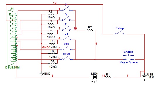 Ну все.E-stop подключен и прописан методом научного тыка, но получилось, все работает. Теперь новая мысля - подцепить на 5 и 6 ось пульта регулировку оборотов шпинделя и скорость подач. Вот тут http://cnc4pc.com/Tech_Docs/guide_for_M ... r_LPT2.htm об этом пишут, но для mach3. На EMC2 наверное тоже можно придумать.
