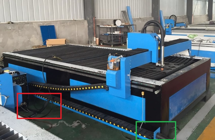 ну вот... станок еще с Китая не уехал, а я уже нашел первую переделку, походу силовые кабеля от плазмы коротковаты, и они сунули их прям кабеле укладчик в неподвижном месте. а у меня там стена, проход будет около 50см, если ее там оставить придется обходить весь станок, за целый день замахаешся, это раз. ДВА слишком близко к станку, гари сосать будет. придется удлинять и ставить около стойки (за ней, относительно стены), вход кабеля от нее указан зеленым. а может просто на фото так кажется, и там нормальная длинна кабелей, а я уже себе развлекуху ищу