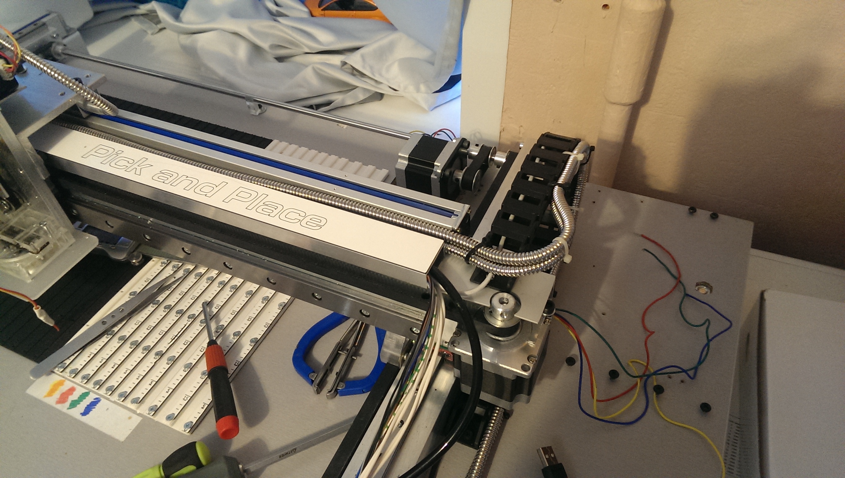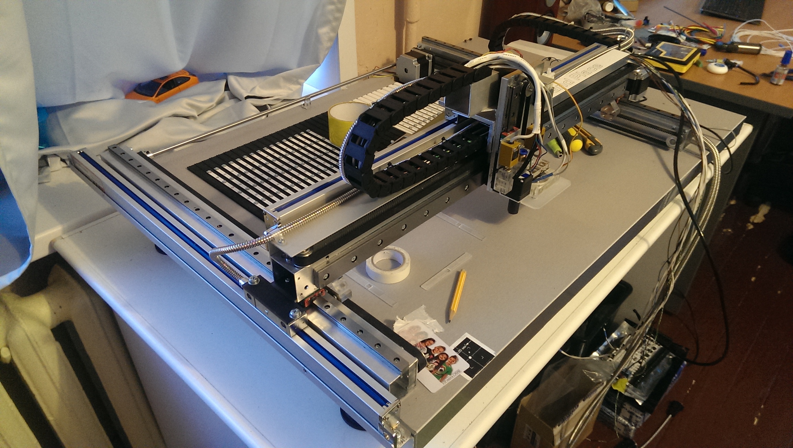 Позавчера закончил с заменой моторов и установкой оптических линеек на раскладчик.