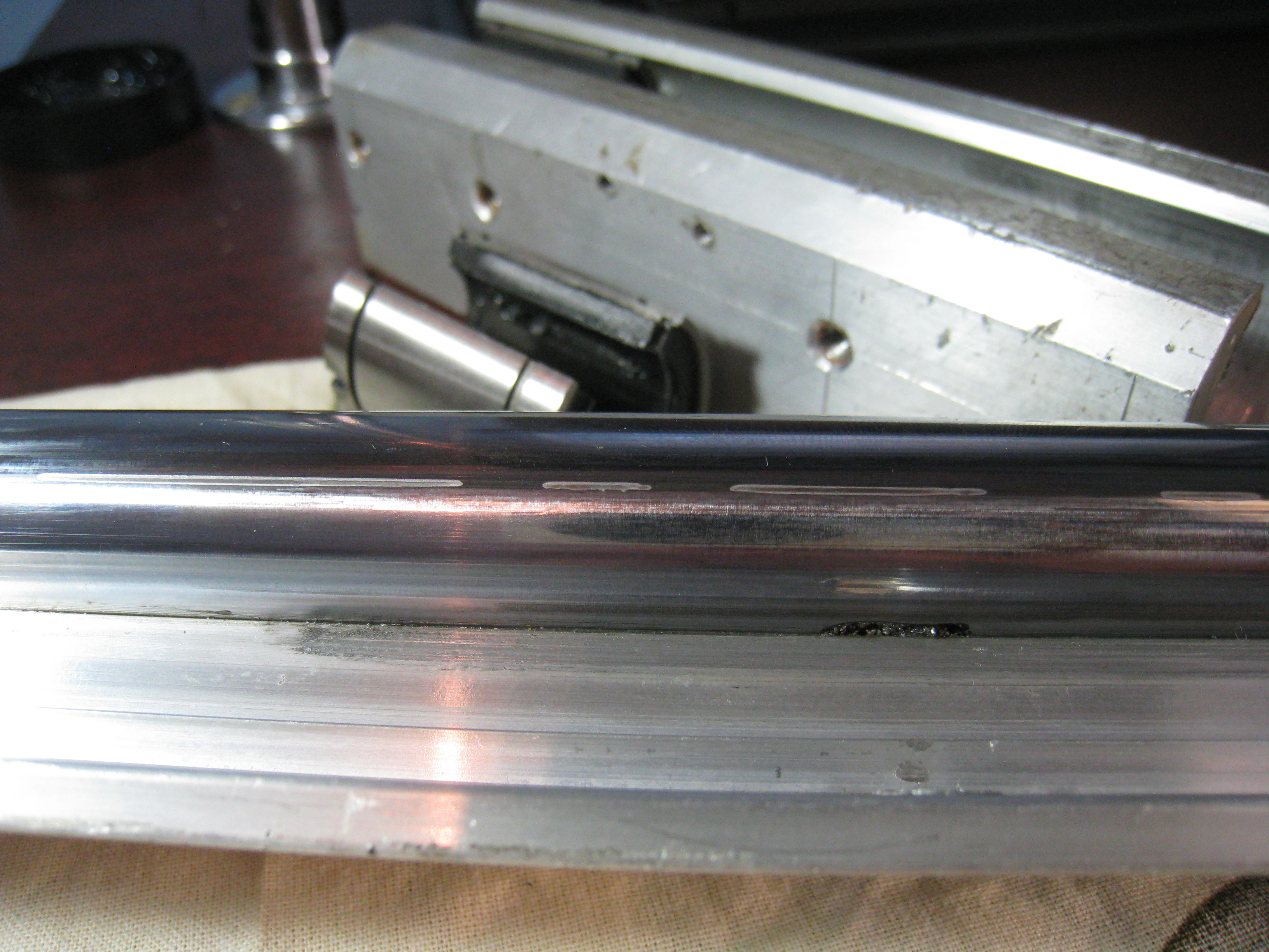 Думаю такая проблема с линейными подшипниками для круглых направляющих распространённая. На первом моём станочке CNC3040 в первые дни эксплуатации тоже полетело пару подшипников. От первого же станочка и осталась пара запасных цельных подшипников - пойду пилить...